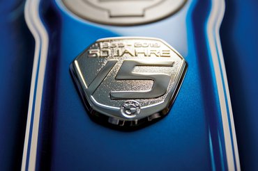 Az R nineT /5 egy ügyesen átdizájnolt nineT, ami a kék fényezést, a tankra szerelt tankpadot, a küllős felniket, a krómozott tükröket és a telókon lévő gumiharmonikákat jelenti.