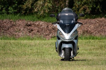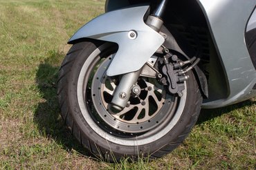 A kormány sokkal karcsúbb és szebb lett, most már nem olyan otromba műanyagtömbök vannak az ember előtt. A kapcsolók ennek ellenére maradtak, ugyanúgy a szabvány Piaggio kezelőszerveket kapta. A féken növesztettek kicsit, bár ezt inkább talán a több köbcenti követelte ki magának. Elöl három-dugattyús, hátul két dugattyús Grimeca nyereg lassít, ráadásul a kombinált rendszerű (a hátsó fék behúzásakor, az első is fog egy adott mértékben). Nem mondom, hogy orra esek a fékerőtől, de meg lehet vele állni, utassal is. Kicsit olyan kenődős, elég hosszan kell behúzni a kart – nem, nincs vason a betét, és igen, van benne olaj – de legalább szépen adagolható, és kanyarban se fogja kirántani alólunk a motort egy blokkoló kerék.
