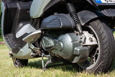 Sajnos sok esetben előjön, hogy ez nem egy kanyarvadász gép. A hátsó gumit jobbról egy kipufogó, balról egy variátor, elölről pedig egy motorblokk melengeti. A folyamatos hőterhelés miatt, hiába egyidős az első abronccsal, hamarabb kiszárad, megkeményedik, és megjelennek rajta az apró repedések. Ez főleg kanyarban zavaró, amikor már kis gázra is elkezd komótosan lemászni az ívről. Nem nehéz összeszedni, és nem is olyan hirtelen előugró, korrigálhatatlan jelenségről van szó, de a kezdő motorosokat könnyedén meglepheti. Ha megtanul ezzel együtt élni az ember, bele lehet kalkulálni a tempós kanyarokba, de a gumit akkor is cserélni kell, mert például vizes úton horror.
