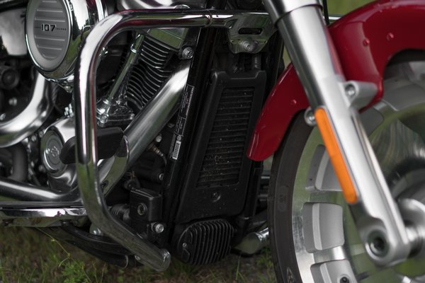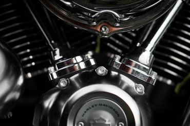 A drive by wire miatt kevés a látható kábel, azok is jórészt a fejidomban mennek. A műszeren itt a Fat Bobbal ellentétben a kilométeróra az analóg, rendes mutatóval, és a fordulatszámot kell digitálisan előhívnunk. Az egytárcsás fék itt alapvető dizájnelem - az az egy tárcsa a motor rosszabbik, vagy mondjuk úgy, nem a szép oldalán van, így tud a szebbik, a kipufogóoldal tökéletes lenni. Amúgy a bal se rossz, és persze azért is tud ilyen tiszta lenni optikailag, mert a Harley a Fat Boy blokkolásgátlóját is a kerékagyba épített jeladókkal oldja meg, nincs látható bádogtárcsa.