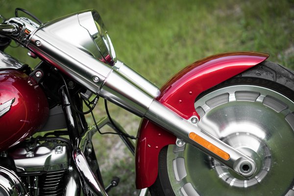 A Softail, vagyis központi rugóstagos, kívülről merev vázasnak tűnő hátsó futóművet az 1980-as években fejlesztette készre a Harley-Davidson. Hogy miért jó, ha egy motor merev vázasnak néz ki? Egyrészt mert a klasszikus Harleyk már az 1920-as években is így néztek ki, márpedig a tradíció minden gyártónál fontos. Építi a márkaértéket, és hosszú távon is hozza a profitot, ha jól használják, nem rövidtávú kufárkodással váltják aprópénzre. Másrészt kevesebb és tisztább vonallal lehet lerajzolni a motort. Plusz nyilván a sportmotorok sem véletlenül lettek hátul központi rugóstagosak, de azokat azért durva lenne idekeverni, szóval beszéljünk inkább a chopperekről. Főleg, hogy itt ez a tökéletes Fat Boy.