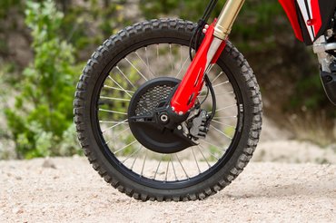 Miért is tűnne fel, ez lényegében egy pár évvel ezelőtti CRF450X lebutított változata, a lebutítás pedig a nem látható részeken történt. Más a vezérlés, az elektronika, nehezebb a főtengely, visszavettek a kompresszióból (12:1 lett a 13,5:1-ből), átdolgozták a légszűrőházat, és a kipufogó is egy lefojtott darab, akkora a végén a lyuk, mint egy 250-esen. És van még katalizátor, szekunder légrendszer, két oxigénszenzor, csak hogy valahogy kordában tartsák az égéstermékeket. Ezzel meg is van, hogy hová lettek a lovak – feláldozták őket a környezetvédelmi normáknak.