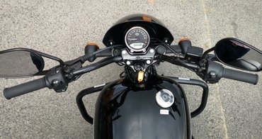 749 köbcenti ez a V-Rod-Dzsízösz, amivel önmagában nincs gond: a baj az 59 newtonméteres nyomaték. Tudom, hogy villannyal összehasonlítani belső égést inkorrekt, de akkor is szarul néz ki, amikor egy Harleyt simán lenyom egy e-bike. Márpedig ennél szinte csak nyomatékosabb villanybiciklik vannak. Villámgyorsan váltogatod végig a 6 fokozatot, de sehol sem érzed meg azt a húzást, ami miatt annak idején elkezdtél motorozni. Sosem próbáltam 125-ös postás Yamahát, de azt képzelem ilyen karakternek.