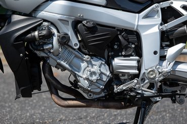 Korszakváltás volt a BMW-nél, amikor 2005-ben elengedték a hosszában beépített soros blokkokat, és előhúzták a teljesen új K 1200 szériát a keresztbe beépített, 55 fokban előre döntött, 1157 köbcentis négyhengeressel. Bár a naked K 1200 R-ben ugyanez a négyhengeres négy lóerővel gyengébb (163 vs. 167 LE), mint a teljes idomos S-ben, a nyomatékgörbéje csodálatos, parádés, ahogyan egyszerre makulátlanul sima és bivalyerős. 2,9 másodperc alatt van százon, 8,5 alatt kétszázon - a tíz lóval erősebb K 1300 R a 0-100-at egy tizeddel tudja rövidebb idő alatt.