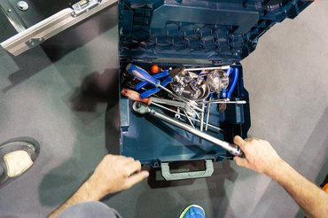 Az már most, az út elején látszik, hogy rendszerben gondolkoznak: minden motorhoz van szállítódoboz, amiből 32 fér be egy kamionba - tehát tíz MIR, tíz 10 Kawasaki Ninja 400, két GSX-R1000 és nemsokára érkezik még 10 gyerekmotor. Ezekhez tartozik még tíz teljesen felszerelt szerszámoskocsi, illetve minden dobozban a motor mellett van két tartalék kerék, hátsó emelő, kormánnyak-emelő (hogy ki lehessen kapni az első villát), egy pár gumimelegítő és egy szerszámos láda - benne a típushoz szükséges alapszerszámok, láncspré, zsírzóspré, powertape, nyomatékkulcs, drótozófogó, guminyomásmérő, infrahőmérő és meg egy sor apróság - tehát ha kimennek a versenypályára, minden ott lesz, a versenyzőnek csak a ruháját és a sisakját kell hoznia.
