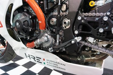 A 2019-es GSX-R1000R a tartalékmotor, azon már állítható a lengővilla forgáspontja (pivot point), azaz lehet változtatni a lengővilla szögét a hátsó kerék tengelyéhez képest. Ez kigyorsításnál számít, erős motoroknál olyankor ugyanis a közhiedelemmel ellenben először lefelé nyomódik a hátsó kerék. Tehát amikor kigyorsításnál rávered a gázt, akkor először beleemel a motor hátuljába, ahogy elkezdi húzni a lánc, és csak utána emeli a hátsó kerék körül az elejét a motornak - ha ez nem lenne, hanem leülne egyből, akkor nem tudnál kigyorsítani, mert alulkormányzottság miatt elcsúszna a motor eleje.