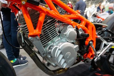 Bemelegítésnek elkezdtük végignézni a legkisebb motorokat. A MIR egy spanyol márka - az összeszerelés is Spanyolországban zajlik, sőt, most már elég sok alkatrészük gyártása is, a váz, a lengővilla és a kerekek is a sajátjuk (ez utóbbi egyébként meglepően könnyű), illetve a blokk két oldalfelét is leöntik maguknak, ami viszont a két blokkfél között van, az egy az egyben egy Honda CBF250. Léghűtés, egy henger, 20-22 lóerő.