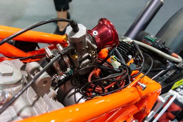 A vízcsövek a Samcotól vannak, ezek egyrészt jobban bírják a nyomást, jobb a hőleadásuk, de leginkább azért szeretik ezeket a versenymotorépítők, mert nehezebben szakadnak-kopnak ki egy alapos betakarózásnál. Ha nehezebben is, de ezek is szakadhatnak, éppen ezért a versenykiírások nem engedik a hűtőfolyadékba kevert fagyállót - szóval vagy desztillált vízzel mennek, vagy a Motulnak az úgynevezett MoCool adalékával, ami a fagyállóhoz hasonlóan keni a vízpumpát, távol tartja az oxidációt, javítja a hűtés hatásfokát, és ha kifolyik a pályára, akkor alkoholos cucc lévén képes elpárologni a vízzel együtt.