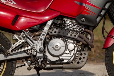 Távolról ez is jól néz ki, viszont a rozsdás kipufogó, a porszáraz zsírzási pontok, a csillapítását teljesen elveszített futómű és a csereérett kuplung jelzik, hogy a birtokbavételt egy nagy szervizzel kell kezdeni. A mechanika egyébként tartós, az egyszerű felépítés, a jó anyagminőség, és a precíz megmunkálás remekül ellensúlyozza azt, hogy a léghűtésű nagy egyhengeresek általában nem az örökkévalóságnak készültek. Tíz éve még azt mondták, hogy 60 ezer kilométer alatt nem kell megbontani, de mostanra tudjuk, hogy 90-100 ezer kilométeres futást is gond nélkül bírják. Ehhez viszont oda kell figyelni a szervizintervallumra.