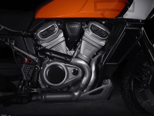 A forma és a műfaj mellett a blokk is új, a Revolution Max blokk folyadékhűtésű, és úgy alakították ki, hogy különböző lökettérfogatokkal lehessen gyártani - Pan Americában például 1250 köbcenti. A hengerszög 60 fok, a nem kívánt rezgéseket pedig kiegyensúlyozótengellyel szűrik ki. A Harley állítása szerint ebben a felállásban 145 lóerős teljesítményre képes, miközben a legnagyobb nyomatéka 122 Nm - miheztartás végett az R 1250 GS 134 lóerős és 142 Nm csúcsnyomatékú.