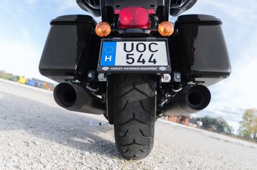 A Harley viszont nem alkuszik, ráadásul a Road Glide Special-hoz képest csökevényes a plexi. Az Ultra amúgy - akárcsak az Electra Glide-on - a fullos kivitelt jelenti. Mégpedig a speciálhoz képest, melynek csak fejidoma és oldaldobozai vannak. Felhajtott plexivel szeretek motorozni, még azon az áron is, hogy szezononként 1-3 darázs arcon csíp. Ez a perverzióm. Mármint nem a darázs, hanem a szél. A Road Glide viszont nem hagyja: a turbulencia 90-es tempónál simán az arcomra kúrja a sildet. Viszont testen úgy fogja a szelet, hogy oké, vénasszonyok nyara volt a teszt napján, de mégiscsak október 10-én mentem végig a dobogókői szerpentinen kicipzározott dzsekiben.