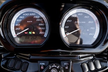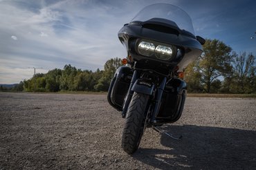 A legevidensebb különbség - túl a formán, nyilván -, hogy a Road Glide fejidoma nem mozog a kormánnyal, tehát mintha rögtön egy kormányszervót is kapott volna. Szmájli. Álló helyben minden motorkormányt nehéz tekergetni, főleg 400 kilós saját tömeg felett, szóval szerintem ez inkább csak műszaki érdekesség, amit az átlagos felhasználó is ért. A szélcsatornát azért nem hiszem, mert a szélvédő speciel rossz; fél fejjel kéne alacsonyabbnak lennem, hogy ne pont a bukósisakomra nyomja a szelet úgy 70 és 130 között nagyjából mindenhol. Nem tudom, miért nem bír a 8-10 milliós túramotorokban gombnyomással állítható szélvédő lenni, mondjuk én feljebb állítanám olyan 8-10 centivel, és valószínűleg úgy is hagynám. A 2010-es Honda Gold Wing ugyanilyen igénytelen volt, mostanra szerencsére sikeresen felszerelték egy keresztirányú elektromos ablakemelővel, de ezt az anyahajó-túramotor műfajt amúgy is kivételesen a Harley nyúlta a Hondától, és nem fordítva.