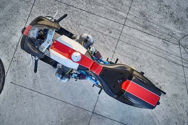 Scott Kolb szintén motorépítő, ám ezúttal magasról tett a klasszikus vonalakra, meg úgy általában az aktuális divatra, miszerint modern technikát kell antikolni, hanem éppen fordítva gondolkozott: egy 1976-os BMW R 90/6 blokkja köré épített modern pályamotort. Mielőtt azzal jönnél, hogy ilyesmi 82 lóerővel biztosan siralmas lesz, szólok, hogy a végeredmény 140 kiló lett, vagyis súly-lóerő arányban nem csak az SSP300-as motorokat veri, de még hegyesebb utcai supermotókat is. Ráadásul az angoloknál elég sok klubverseny van, ahol ezzel akár rajthoz is lehetne állni a lightweight kategóriában.