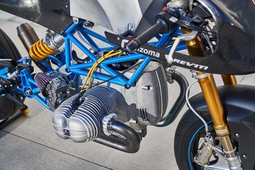 A blokk sem gyári, és ahhoz, hogy az eredeti 62 lóerőt 82-re húzzák, komolyan bele kellett nyúlni. Ezt a BMW-specialista Chris Hodgson intézte, aki kapásból 1000 köbcentire növelte a lökettérfogatot egy Siebenrock big bore kittel (eredetileg 898 köbcenti volt). Ehhez jöttek még könnyebb és nagyobb szelepek, átdolgozott hengerfejek, könnyített lendkerék, átdolgozott és kibalanszolt főtengely és egy új kuplung, ami bírja a megnövelt teljesítményt és a versenyhasználatot.