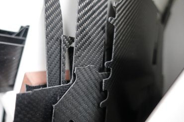 Mint már volt róla szó, a szénszál nem csodaanyag, nem alkalmas mindenre. Például egy 90 fokos szövésű karbon-kompozit lapból ha nem 90 vagy 45 fokos szögben vágnak ki egy csíkot, terhelésre nem csak hajlik, hanem csavarodik is. Ugyanígy elvesznek az előnyei, ha egy lapból bonyolult formákat vágnak ki - ha a szálak nem futnak végig, nem tudják ellátni a feladatukat.