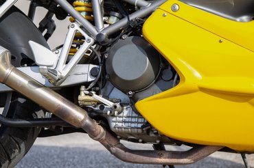Már az alapjárata is aggodalommal tölt el, igazi Ducati hang, hörgéssel és a koporsóban zörgő csontokkal - az utóbbi a szárazkuplung hangja. A kuplungfedél kinyitását sokan meglépik, ami kapásból +50%-ot jelent a szerkezet élettartamának. Kell neki a hűtés, különben kiforr a kinyomócsapágyból a zsír, alapból 30 ezer kilométer után csereérett lesz még gondos használat mellett is, míg kinyitva ötvenezret is elfut.