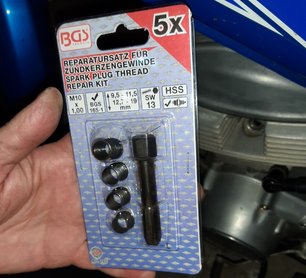 Dave ilyet vett, mert közben lett egy felismerésünk is, miért nem akarják a szerelők beépíteni a helicoilt gyertyához. Szatyi ugyanis, Dávidék egyik szerelője rálát a témára és ő hajlandó volt bővített mondatokban is beszélni a dologról - helicoillal kapott menet teteje ugyanis úgy nem lesz sima, pedig a gyertyának szüksége lenne olyanra a jó tömítéshez. Én láttam már helicoilozott gyertyamenetet, ami működött, de lehet, hogy azoknál benne volt egy mázlifaktor is ebben. Mindenesetre ajándék táltosnak ne nézd a protkóját. Ez volt az egyetlen opciónk, ezt kellett beépíteni, szerencsére adták hozzá a megfelelő méretű menetfúrót is. A terv: lassan haladva, negyedeket tekerve, a menetfúrót minden alkalommal elpucolva és újrazsírozva hatolni befelé, hogy a lehető legkevesebb törmelék jusson az égéstérbe. Mert az alumínium ugyan puha fém, de azért annak sem örül a finom szerkezet.