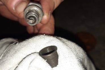 Legalább öt perce izzadtam, mire úgy éreztem, végre elkapta és végre egyenesen megy – mentségemre szóljon, hogy mire a garázsunkba került, már szinte semmi menet nem volt a hengerfejben. Vagy huszonötször vettem ki a menetfúrót, minden alkalommal patyolat tisztára pucolva, majd újra bezsírozva azt, s azt hiszem, elég jól sikerült, mert vagy semennyi, vagy csak rettentő kevés spén jutott be. A biztonság kedvéért a végén kiporszívóztuk a hengert a gyertya lyukán át.