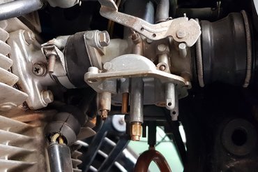 Amíg szét voltak szedve a karbik és kint voltak a tűszelepek, azért mindkettőnél megnéztem, hogy jön-e a benzin, majd magukra hagytam őket – a karburátorszerelés elmélyült feladat. Negyed óra múlva hívtak – indítsunk. Megfújkáltam féktisztítóval a légszűrőházak csatornáját, rugdaltam párat – a kis Honda egy hengerrel, berregve nyitogatni kezdte a csipáit, aztán már ketyegett benzinről is.
