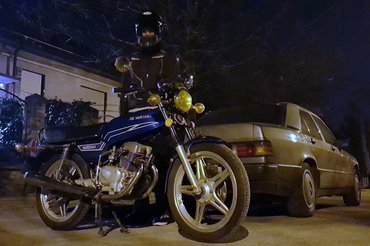 Miközben Bálint az utolsó simításokat végezte a saját Hondáján – megterveztük és felszereltük a gumicsövet, amit a váz alsó, keresztben futó merevítőjére tettünk, hogy a középsztender arra támaszkodjon fel, s a motor végre ne akarjon ledőlni, illetve felszerelte a karácsonyra kapott, két vadonatúj hátsó indexlámpát – Bendegúz is megpróbálta használatba venni a saját motorját. Amit az eladó klubtársunk sok-sok pénz és munka árán előtte ugyan alaposan felújított, s látom is rajta, mennyi minden szépen rendbe lett téve a gépen, de... az akkor is csak egy negyven éves szerkezet egy motorozást épp csak elkezdő, lelkes fiatal kezében. Abból sose sül ki jó, legalábbis az elején.