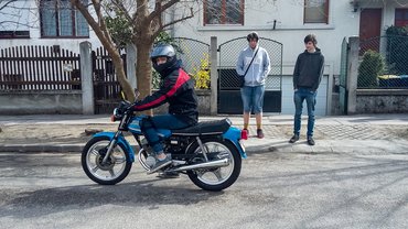 Ajánlottam a figyelmébe a jó kis 125-ös robogókat, a Suzuki TU125-öst, a Honda CG125-öst (Zách Dani is olyannal jár, talán nem véletlenül vette, mert ő elég nagy kilométergyűjtő) – szóval valami egyszerűt, megbízhatót, finomat. Csak hát Bálint a döntése meghozatalakor tizenöt éves volt, ciki robogóról szó se lehetett, ha már motor, akkor legyen minél erősebb alapon pedig az A1-kategória legtetejét nézegette. Nem is tudom, hogyan került egyszer szóba a CB125 Twin, talán, én hülye, magam hoztam szóba neki, csak hogy felvillantsam, milyen őrületes távlatok vannak a nyolcadliteres kategóriában, még a 125-ös jogsi lehetőségein belül is. Bálint meg azonnal ráharapott.