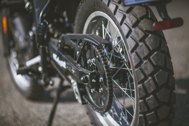 Alapból jár hozzá oldal- és középsztender, és ugyan az utóbbi némileg behatárolja a szabad magasságot, és már egy járdapadkán átmászásnál le tud koccanni, nem szerelném le, ugyanis nagyban megkönnyíti a motor karbantartását, elég csak egy gumicserére vagy láncápolásra gondolni. Szintén hálás apróság, hogy gyárilag kis műanyag védők kerültek a keréktengelyekre, egy-egy elcsúszásnál ezzel is csökkentve a kárt.
