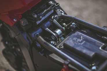 A Minarelli blokk már sokszor bizonyított, az összeszerelési minőség is korrekt – még a lépcsőn lefelé gurulva is csak az ülés alatt hánykolódó szerszámkészlet zörgött. Emellett kellően egyszerű és sallangmentes az egész ahhoz, hogy ne menjen rá egy vagyon a karbantartásokra. Szerelni is egyszerű, elég lekapni az ülést, és hozzáférni a tank alá rejtett akkumulátorhoz, kéznél vannak a biztosítékok is, és a légszűrő cseréjéhez is csak négy csavart kell kihajtani – szeretem ezt a fajta funkcionális egyszerűséget, örülök, ha a régi jó dolgokat sikeresen menekítik át.