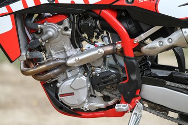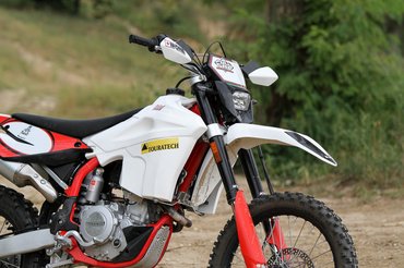Ahogy az RS 300 R, az ötkilós nagypuska is hajdani Husqvarna technikára épül. A blokk és a váz kvázi ugyanaz, mint a TE510-esé volt, csak a futóművet cserélték Kayabára. A periférián még modernizáltak ezt-azt: átszabták az idomokat és ledesre cseréltek minden fényforrást. A kónuszos kormány, a Mikuni befecskendező, a Magura hidraulikus kuplung vagy a Brembo fékek tovább erősítik azt az érzést, hogy a költséghatékonyság helyett inkább a strapabírásra fókuszáltak.