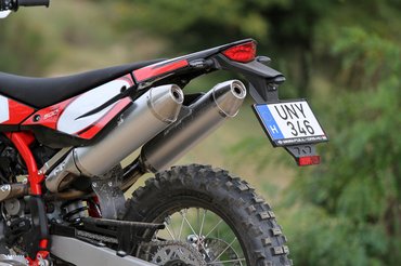 Ennek ellenére nem nagyon látni SWM-eket a neves enduro versenyeken. Egyrészt az osztrákokhoz képest nyilván töredék fejlesztési és marketing költségvetésből gazdálkodnak. Másrészt nem az élversenyzők, hanem a hozzám hasonló hobbisták a célcsoport. Míg a tavaly bemutatott 300-as változat tényleg csak szigorúan vett endurózásra alkalmas, az ötkilós képes teljesíteni a dual-sportos elvárásokat is.