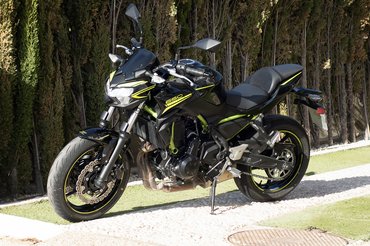 A sorkettes Z650 a Yamaha MT-07 és a Suzuki SV650 közvetlen konkurense, mely 2017-ben váltotta az ER6-ost. Az elődjénél 19 kilóval (!) könnyebb naked bike-ot Iván már részletesen kivesézte. Nála egy kevésbé látványos színű példány járt, ami tényleg semmilyennek nézett ki. A húszhúszas modell azonban kapott egy agresszív ledes lámpaidomot, és a színes műszerfalnak köszönhetően a nyeregből is igencsak frissnek és kívánatosnak tűnik.