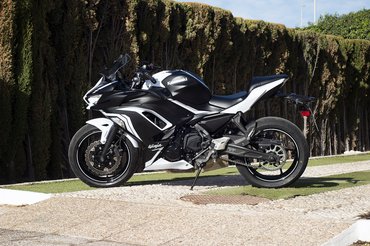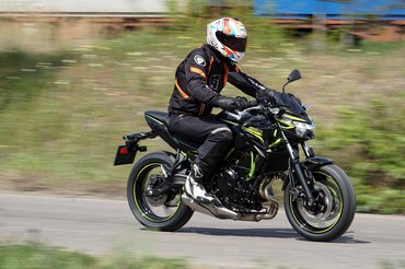 A fenti megállapítások ugyanígy igazak a hatötvenes Ninjára is. A felöltöztetett Z650 nemcsak piszok jól néz ki, még praktikusabb is a csupasznál. Az értékelhető szélvédelem miatt hosszabb utakra sokkal alkalmasabb, autópályán sem lesz vele kínszenvedés órákat utazni. A csutkakormány jóval a villahíd fölött van, alig terhelődik súly a csuklóra. Ez a mérsékelten sportos testtartás a hegyi kergetőzéskor még jól is jöhetne, azonban a lábtartó helyzete nem igazán passzol hozzá.