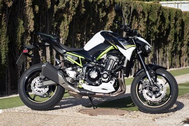 A kéthengeres hatötvenesek után a sornégyes Z900 lehet a következő lépcső. Már ha nem szeretnél friss A2-es jogsival egyből a kilencszázassal kezdeni: a 125 lóerős nyitott változat mellett ugyanis létezik egy 95 lovas, amit az A2-es jogosítvány-limitnek megfelelő 48 lóerőre lehet folytani. Mégsem gondolom a majdnem ezres Z-t ideális kezdőmotornak, mégpedig a súlya miatt. A menetkészen 210 kilogramm manapság megmosolyogtató értéknek tűnik egy 190 kiló körüli Street Triple-hez vagy MT09-hez képest, egyedül a Suzuki GSX-S750 nehezebb nála a kategóriában.
