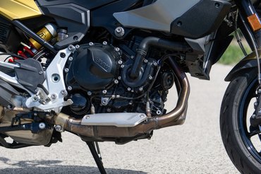 A 850-es GS-hez képest a löket változatlan, a furaton viszont növeltek 2 millimétert, teljesen átdolgozták a hengerfejet, kovácsolt dugattyúkat építettek be, növelték a sűrítési viszonyt (13,1:1!), amiktől a teljesítmény körülbelül 10%-ot nőtt, 95-ről 105 lóerőre. Az egészet pedig úgy állították be, hogy nem a 105 lóerő a meghatározó élmény, hanem a 92 Nm nyomaték. Az egészet nagyon kellemesen a középtartományra hangolták, a felső tartomány pedig csak erősödő vibrációkat tartogat, fejet letépő megindulást már nem. A teljesítményt illetően már az F 800 GS után sem volt hiányérzetem, és ebből sem a lóerők hiányoznak, hanem a csibészség.