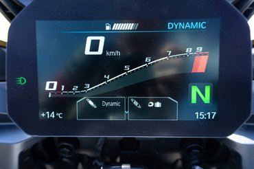 A műszerfal és a kapcsolók már ismerősek a GS-ekről, a 6,5 collos TFT szép darab, ott van rajta minden adat, jó a felbontása, a fényereje, és a kezelése is egyszerű, a menürendszer átlátható - a japánoknak ez nem megy, a BMW-nél viszont tudják, hogy mely funkciókat lehet eldugni a menürendszerben, és melyek azok, amelyek külön gombot érdemelnek - az üzemmód, a futómű és a markolatfűtés például ilyenek.
