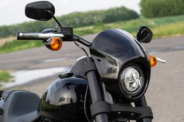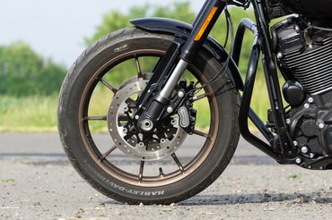 A Low Rider S a Harley kínálatának sportosabb vége, meredek villaszöggel, rövid tengelytávval, markosabb fékkel - legalábbis a Low Riderhez képest, de ezekkel paraméterekkel kezelhetőségben felveszi a versenyt a Fat Bobbal is, pedig annak 16-os az első kereke, ennek meg 19-es.