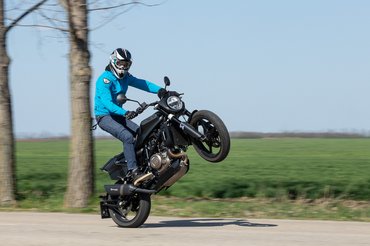 Úgy százhatvanig nem is szűnik a vehemencia, némi szadista hajlammal akár kétszázig is lehet hajszolni. Azonban a modern motormenedzsmentnek és a tartósabb anyagoknak hála egy több mint tíz centi átmérőjű dugattyút is relatíve kulturáltan és tartósan lehet üzemeltetni. Kisebb fordulaton sem rázza szét a láncot, és konstans utazósebességnél sem zsibbasztja szét rezgéssel a végtagokat. Egy picivel rövidebb áttételt simán elbírna, országúton úgysem kívánja az ember a 120 feletti utazótempót. A virtuskodást ellenben nagyon kívánja! Az agyontompított, szételektronikázott motorok korában alig találni már gépet, ami ilyen nyers élményt ad – pláne 100 lóerő alatt.