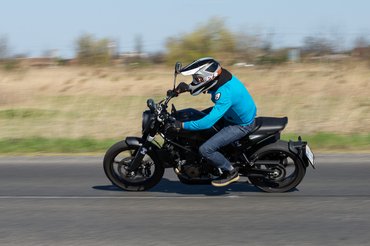 Aki csak nyugisan nézelődne, az rossz helyen jár. A Svartpilen igazából egy jól álcázott supermoto, egy stílusos huligáneszköz – lenne, ha ki lehetne kapcsolni az blokkolásgátlót. Sajnos a KTM-ekre jellemző supermoto módot is kihagyták az elektronikai csomagból. Pedig még csúszókuplung is van, és az egyoldalas Brembo fékrendszer kellő fékerőt szolgáltat. Nem csoda, hiszen teletankolva is csak 170 kilónyi motorkerékpárt kell megállítania.