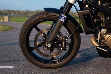 A mohó egyhengeres kívánja a hajtást, az oda-vissza működő gyorsváltóval megtámogatva minden kanyarból nyélen akarsz távozni vele. A hőbörgést a váz és a futómű is támogatja: a térhálós csőváz merev és pontos, a WP Apex rugózó elemek kellően feszesre vannak hangolva. A 18-as első kerék, a vegyes mintázatú gumik (Pirelli MT60 RS) és a bőséges rugóút miatt akár földutas csapatás is szóba jöhet. És ha kellő bizalmad van az egyébként meglepően jól tapadó, majdnem-bütykös Pirellikben, akkor egy kellően kanyargós szerpentinen sportmotorokat lehet vele alázni. Nem vicc, ezzel a koromfekete, túlárazott MZ-vel jobban szórakoztam, mint az elmúlt öt évben bármivel.