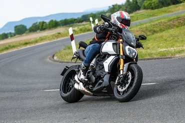 Amikor a Ducati tesztpilótáját, Alessandro Valiát arról faggatták, hogy mire a legbüszkébb, a Diavelt külön kiemelte, mert egyáltalán nem volt triviális, hogy ezzel a tengelytávval és a 240-es hátsó gumival így forduljon. A számok alapján egy zsák szerencsétlenségnek kéne lennie kanyarban, ehhez képest még a szerkesztőség sportmotorbubusai sem tudtak belekötni. A jóságban jelentős szerepe van a Pirellinek is, akik legyártották hozzá a Rosso III-at ebben az elbaszott méretben - 240 mm széles, ilyet a motorépítők raknak a szélesített Harley-k alá, annyi különbséggel, hogy ennek olyan a profilja, mint egy sportguminak.