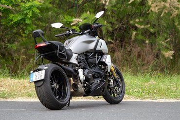 Az új váz és az alu lengőkar változásai nem feltűnőek, a cél mindkettővel a jobb kezelhetőség volt. Módosítottak például a hűtő felfogatásán, hogy a blokkot hátrébb tudják építeni, így közelebb legyen a tömegközépponthoz. Meredekebb lett a villaszög is, és a hátsó gátló új pozíciója sem véletlen, így tudtak növelni a rugóúton. Állítólag a régi Diavelt simán felírták vesekőre, ezzel viszont néhol elég gané utakon mentem, mégsem panaszkodtam. Hiába lett tehát hosszabb és nehezebb a korábbi szériánál, akik vezették mind a kettőt, állítják, hogy kezesebb lett.