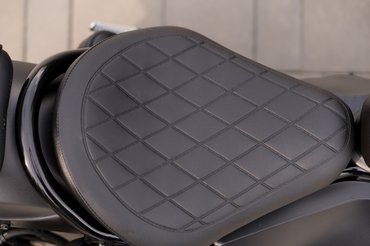 A kormány az egyik bajom, a másik, hogy nem értem az üléspozíciót; ilyen alakú motoron én előre szeretném rakni a lábamat, ha már amúgy is olyan alacsonyan ülök, mint egy weimari vizsla marmagassága. Ha alattam van a lábam, nekem valami café raceresen támadóbb üléspozíció kéne, akkor is, ha kényelmetlen. Főleg, hogy ez az ülés nekem annyira kényelmetlen, hogy fél óra után kegyetlenül megfájdul rajta a seggem, tehát ennyi erővel tök mindegy. A Fat Bob se fotel, de azon elvagyok tíz órát, ezen 40 perc is fájt.
