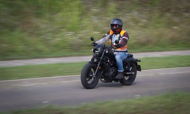 Úgy éreztem, drámaian idiótán nézek ki rajta, hordozója vagyok a cirkuszi-medve-a-gyerekbiciklin stílus valamennyi tünetének, de ahogy a rólam készült képeket nézegettem, közel sem olyan riasztó a helyzet, mint a Harley-Davidson Street 750-en volt. Érezni mondjuk nem éreztem magam rajta annyira szarul, inkább csak hülyén - így jár, aki 1750 köbcentis motorral meg a 471 köbcentisért. Aztán hazafelé a tesztmotoron azon gondolkozik, van-e ebben egyáltalán 46 ló, mert érzésre nem megy jobban, mint egy 28 lovas, 300-as robogó. Az indiai Harleyra visszatérve az félmillióval drágább, és tele van gagyi apróságokkal, a kapcsolóktól a lámpákig, a Rebelen bezzeg semmi szégyenteljes nincs.