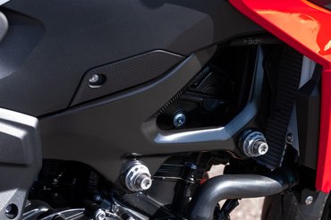 No, és ott a gyorsváltó, amely kuplung nélküli, villámgyors kapcsolásokat tesz lehetővé a fokozatok között. Ez, mint a hasonló szerkezetek általában, 4000-es fordulat alatt használva inkább csak masszív csattanásokkal kísért rántásokat idéz elő, s csak nagyobb fordulaton működik jól – de ott istenien. Fejben mindig el kell dönteni – andalgás van-e (akkor kuplunggal váltunk), vagy zúzás (akkor lehet pőrén rugdalni a gépet). Ha már itt tartunk – a váltót elég karcosnak találtam a tesztmotoron (alig 1000 km volt benne, amikor megkaptam), de az útja rövid, jól érezhetőek a fokozatok, ez a fajta kelletlenség pedig pár ezer alatt remélhetőleg elmúlik belőle.