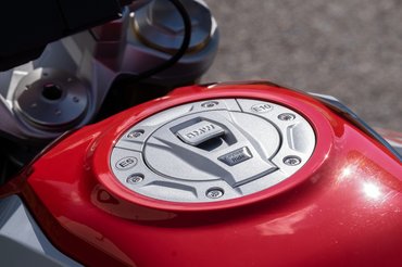 Nemcsak kinézetre, de pózra is agresszívebb lett a 800-asnál – lejjebb és előrébb van a kormány, púposabb a tank, hátrébb és kicsit feljebb vannak a lábtartók, ahogy ülsz rajta, kicsit máris támadod a kanyart. Senki ne gondoljon itt valami vészes streetfighter-pózra, mert amikor visszaültem a saját Ducati 750SS-esmre, amin pedig kiemelős, magasabb kormány van, nem pedig az eredeti csutkák, úgy éreztem, az orromon motorozom, kézen állva. Szóval nem lett túl vad a póz, csuklógyilkosnak meg egyáltalán nem mondanám, inkább ez már épp enged kicsit motorozni a régi 800-as lócáról álmélkodó póza után. Sokkal jobb egyensúlyt talál el.