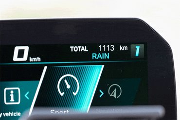 Szerencsére az én tesztmotoromhoz járt az aktív, más néven Ride Modes Pro csomag (á 208 400 forint), amelyben a gyorsváltó, a kanyar-ABS, a dinamikus menetstabilizáló mellé adták a menetüzemmód-választási lehetőséget is, tehát én nem csak a Rain és Normal korrekciókat választhattam ki a BMW-nél szokásos, bal kéznél levő, tekerős-billentős választógombbal, hanem a Dynamic-et, sőt, némi trükkel a Dynamic Prót is. Dynamicben pedig már magára talál az addig kicsit hervatag motor – egyszer csak meglesz a nyomaték, felszívja magát a sorkettő, lehet motorozni. Más kérdés, hogy Budapesten járkálva a bukkanók miatt állandóan Normal-üzemmódban tartottam a rendszert, Dynamic-ben ugyanis túlságosan figyelnem kellett a csuklómra, hogy ne rángasson alattam állandóan. Országúton viszont nincs kérdés – azonnal katt Dynamic-be.