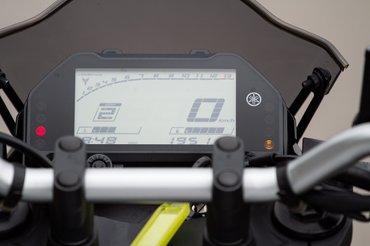 A csattanó, hogy egyébként nagy újítás nem történt, csak a lámpa és a tankburkolat lett félelmetes, valójában ez egy szelíd, barátságos motor. A műszaki alapok az YZF-R3-ból jönnek, csak ezen teljesen egyenesen ülsz (mellékszál, de az egyébként milyen dolog, hogy a 300-asból van sportmotorjuk, míg az MT-07-ből és az MT-09-ből nincs, pedig igény lenne rá). Nem Európa a legfőbb piaca, ennek megfelelően kicsi motor, nem is fértem el rajta különösebben jól, a tank mélyedésébe egyszerűen már nem fért be a combom. Cserébe a kezdők biztosan értékelni fogják, hogy alacsony növés mellett is biztos a kétlábas talajfogás. Viszont könnyű, és ez testmérettől és tapasztalattól függetlenül jó dolog.