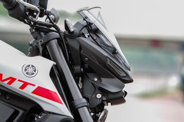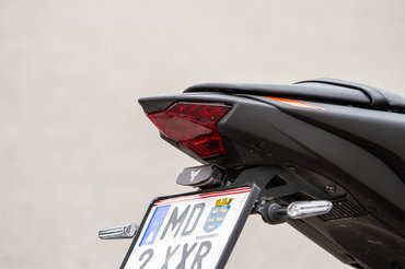 Terveztek inkább egy mogorva fejidomot, elengedték az analóg órát és a helyére monokróm LCD műszerfalat tettek, illetve légbeömlőket imitáló tankburkolatot kapott, hogy valamivel jól lakjon a szem. Ez a szürke-piros kombináció messze a legjobb felállás, ugyanolyan jól áll az összes MT-nek 125-től 1000 köbcentiig. Nagy kár, hogy a színen túl nem sok izgalmas részletet találni.