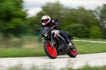 Az irányításához nem kell erő, sőt, igazából nem is lehet beszélni irányításról, hiszen veled együtt mozog, a testrészeddé válik, a gondolatodra reagál, nem kell ráhatnod, magától elvégzi a feladatot. Lecserélték a kormányt, valamivel magasabb lett, és közelebb került a törzshöz - nem forradalmi a változás, eddig is kezes volt, továbbra is az. Nagyobb motorról érkezve fejben kell némi átállás, a pörgős, 321 köbcentis kéthengeres ha alulról nem is teljesen halott, de élni olyan 7000-es fordulattól kezd, és egészen 12500-ig tart a buli, vagyis a haladáshoz nem elég öblögetni, rá kell tenni a tüzet.