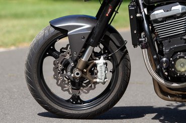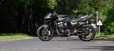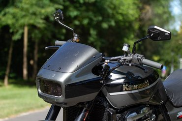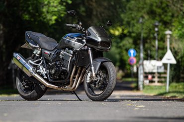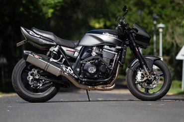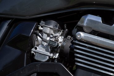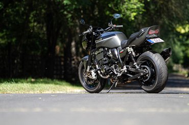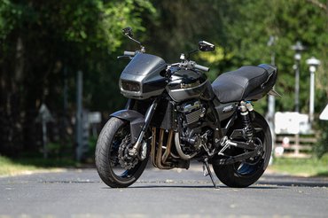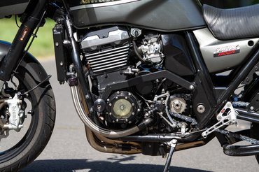A külső megtévesztő, hiszen csak a próbakör utáni beszélgetésnél derült ki számomra, hogy a feliratokkal ellenben ez igazából egy ZRX1100 - az 1100-as feliratok azóta meg is érkeztek, a téli talpraállítás során azok is felkerülnek. De ugyanígy megzavart az 1200-as lengővillája, mely a merevítő barázdáról ismerhető fel, illetve az 1100-as Mikuniját az 1200-as fojtószelepszenzorral szerelt Keihinjére cserélték.