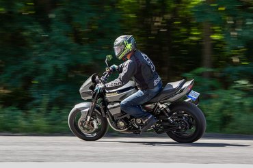De ezek a módosítások önmagukban nem indokolják azt a menést, amit ez előad. Ez nemhogy nem az 1100-as ZRX ligája, még az 1200-ason is túl van, és erre nem magyarázat sem az Akrapovic rendszer, sem a karbicsere. Lent kellemesen telt, ahogyan elindulsz, egészen olyan, mint az 1200-as, csak míg az 1200-as egy kedves jófiú, ez a fordulat megérkezésével nem elkókad, hanem büdös vadállat lesz. Azonnal veszi a lapot, és nem fogy el, hétezertől pedig már erősen kell kapaszkodni rajta. Ez bizony nagyon más kávéház, mint a széria ZRX-ek.